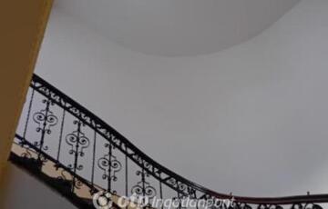 Gyönyörű, freskóval díszített lépcsőházban az első emeleten helyezkedik el a lakás, két bejárati ajtóval rendelkezik, amelyekből az egyik a lépcsőházból, a másik a körfolyosóról nyílik. 4,1 méteres belmagassága, hatalmas három méteres fa ajtajai tágas teret biztosítanak. A belmagasság miatt praktikusan galériázható.