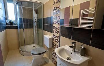 Az emeleten egy kényelmes méretű fürdőszoba, közlekedő és négy praktikus elrendezésű szoba kapott helyet. Kedvező tájolásának köszönhetően a helyiségek egész nap világosak.
