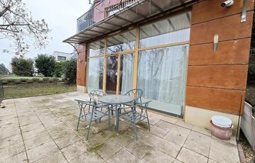Zöldmálon zsákutcában, erdő szomszédságában kiadó egy kevés lakásos újszerű társasházban egy 1,5 szobás, nagy teraszos, közvetlen kertkapcsolatos lakás. Bútorozott, gépesített konyhával, házközponti fűtés egyedi méréssel (padlófűtés és radiátoros hőleadókkal), hatalmas ablakokkal.