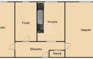 - A 48 m²-es, praktikus elrendezésű otthon két világos, tágas szobával és külön konyhával rendelkezik.