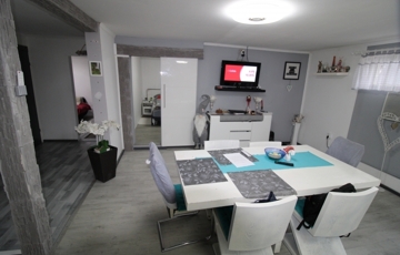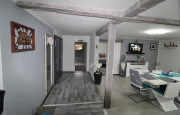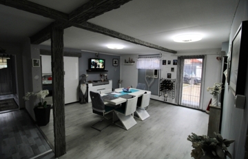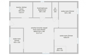 A ház központjában tágas, fiatalos elrendezésű amerikai-konyhás- nappai- étkező, körülötte kényelmes méretű hálószobák.