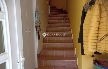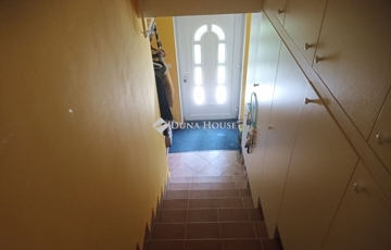 Az ingatlanban a tárolásra is nagy hangsúlyt fektettek; a lépcsőtérben beépített szekrények segítik a rend fenntartását.