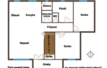 A WC külön helyiségben található, ami nagyobb családok számára is kényelmet jelent. A konyhából nyíló kamra az északi ablaknak köszönhetően kiváló tárolóhely az élelmiszerek számára.