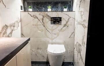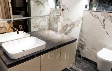 A fő hálószoba saját, kádas fürdőszobával és WC-vel rendelkezik, ezen felül pedig egy második, zuhanyzós fürdőszoba is a lakás része, szintén WC-vel.
