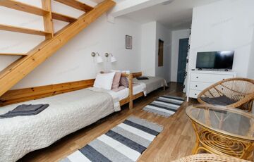 - a lakásban nagy nappali-étkező, 2 hálószoba, 2 WC és 2 fürdőszoba, reggeliztetésre is alkalmas, jól felszerelt konyha található