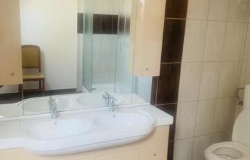 A másik apartman 5 szobás 10 férőhelyes ,egy közös konyhával,étkezővel ,2 mosdóval ,2 wc -vel