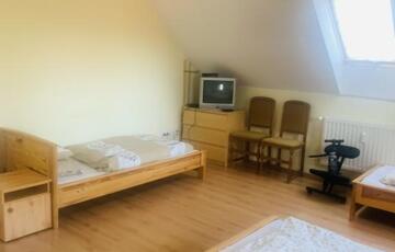 Így tehát a 7 tágas szoba 16 fő kényelmes elhelyezésére alkalmas.