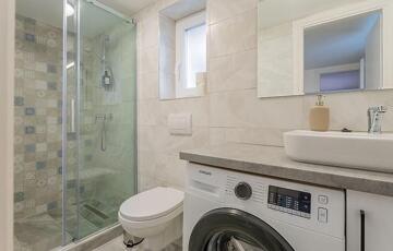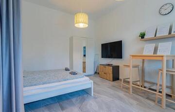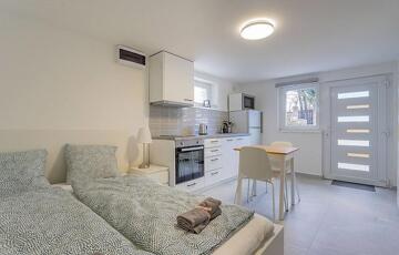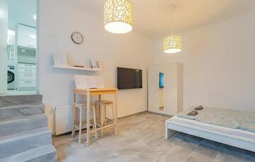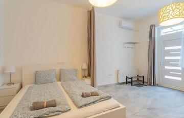 Az ingatlan jelenleg 5 különálló lakást foglal magában, mindegyik külön bejárattal és saját víz- és villanyórával rendelkezik. A lakások klimatizáltak, és a modern kondenzációs kazán gondoskodik a fűtésükről. A nyílászárók műanyagok, thermo/ hőszigetelt üveggel ellátottak. A burkolatok jó állapotúak, a többi helyiségben pedig hidegburkolatok található. A lakóegységek kialakítása kényelmes és praktikus, fehér falakkal és modern, szürke és/vagy fekete színek dominanciájával.