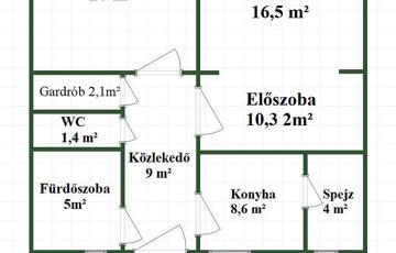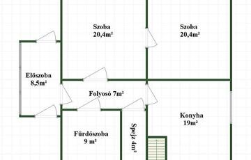 Az emelet külön bejáratú, bruttó 78 m² / nettó 71 m², itt: