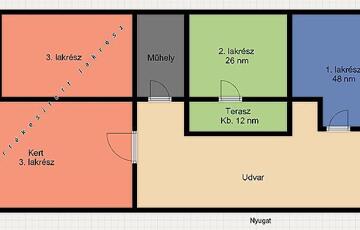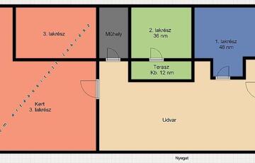 Újpesten, a Bródy Imre Gimnázium közelében, csendes mellékutcában, 2 lakásos udvarban, eladásra kínálunk egy kétgenerációs, 84 nm-es, 2+1 félszoba+hallos kialakítású házrészt.