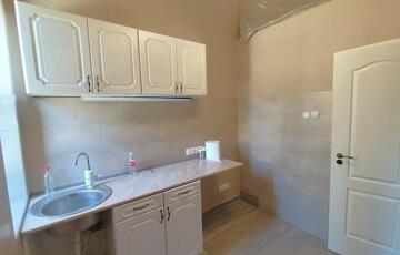 Az 1. lakrész 48 nm, 1+1 félszoba+hallos kialakítású, beköltözhető állapotú. Ebben a lakrészben fa típusú ablakok és gázkonvektoros fűtés van.
