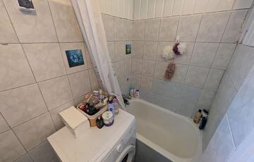 Újpestes, a Stop Shop környékén I. emeleti másfél szobás, közepes állapotú téglalakás kevés lakásos társasházban eladó!