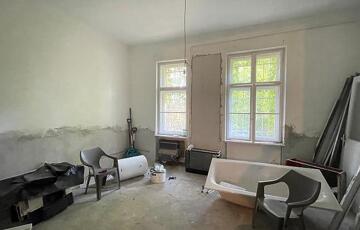 A lakás az épület földszintjén található, felújítandó állapotú, egyedi fűtéses. A társasház döntése értelmében a a földszinti lakások esetében az ablakok előtti 4 m-es sáv saját használatú.