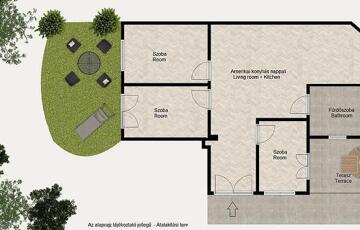 Igény szerint könnyen amerikai konyhás nappali + 2 vagy 3 hálószobássá alakítható.