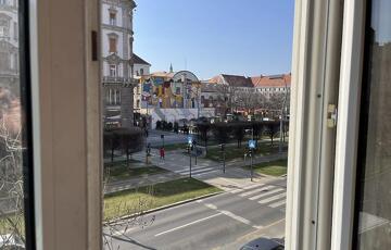 Eladó egy 58 négyzetméteres, háromszobás lakás Budapest 7. kerületében, a Károly körúton, liftes társasház első emeletén.