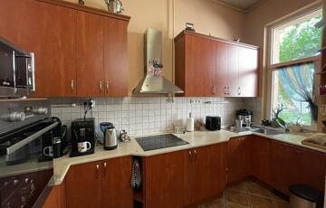Újpesten, a piac közelében, frekventált, zöld fás utcában, 4 lakásos udvarban, eladásra kínálunk egy bruttó 210 nm-es, nettó 185 nm-es, belső kétszintes, 7 szobás, jó állapotú, téglalakást teraszkapcsolattal.