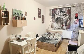 Jelenleg 2 lakrész van kialakítva, egyenként 1 szoba, konyha, fürdőszoba, de könnyen összenyitható.