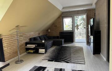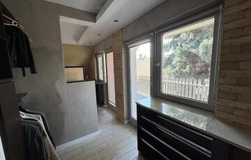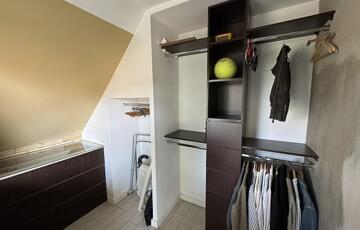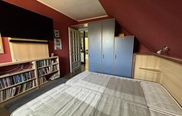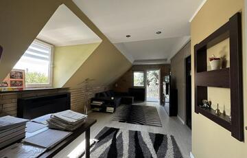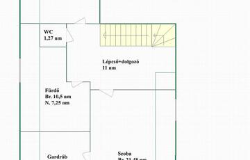 Az emeleten (tetőtér) 1 nagy szoba 2 db gardróbbal plusz jól kihasználható széles erkéllyel, 1 kisebb (br 12.8 nm) hálószoba, dolgozó sarok, ablakos, kádas fürdőszoba, és külön WC.