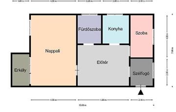 A lakás 68 m² alapterületű, ehhez 4 m²-es erkély tartozik.
