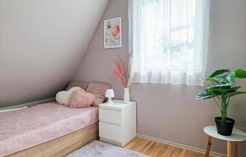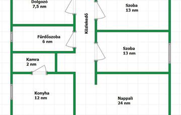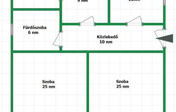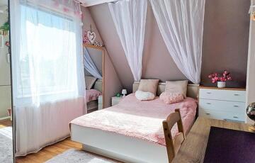 Az alsó szinten három tágas szoba, konyha, fürdőszoba, kamra és közlekedő található, míg a tetőtérben egy nappali, három hálószoba, konyha, kamra, fürdőszoba és közlekedő került kialakításra. A két szint jelenleg külön bejárattal rendelkezik, a tetőtér külső feljárattal van kialakítva, de belső lépcső kialakítására is van lehetőség.