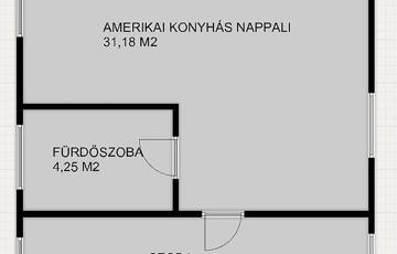 A lakásban tágas étkezős amerikai konyhás nappali, 1 szoba, fürdőszoba kerül kialakításra.
