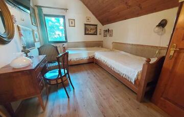 A szobákban parketta, a többi helyiségben járólap található, a nyílászárók fa típusú termo üvegesek.