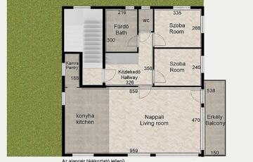 A bejárati szint központi helysége egy napos, erkélykapcsolattal is rendelkező, nagyméretű amerikai konyhás nappali. Szomszédságában találjuk a kényelmes méretű, káddal szerelt fürdőszobát, egy külön wc-t, a tárolást könnyítő kamrát és 2 hálószobát.