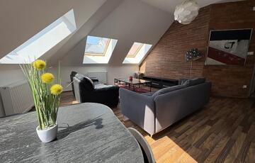 Az ingatlan 48 m2-es hasznos alapterülettel rendelkezik, míg a valóságos mérete összesen 64 m2. Az újépítésű lakás szintráépítéssel jött létre egy liftes társasház IV. emeletén.