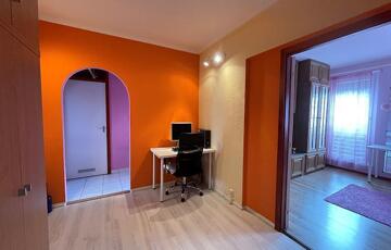 Káposztásmegyer I.-en, három emeletes cseréptetős társasház III. emeletén, 80nm-es, amerikai konyha + 2+1félszobás lakás eladó, két franciaerkéllyel. Az ingatlan közepes-jó állapotú, a nappali-konyha járólapos, a többi helyiség laminált parkettás. A nyílászárók műanyag thermo üvegesek, redőnyösek, részben szúnyoghálósok. A konyhabútort és a radiátorokat kicserélték, a fürdőszobát és a wc-t újra burkolták, új kádat szereltek be. A bejárati ajtó több ponton záródó biztonsági. A beépített bútorzat a vételár részét képezik. A környék ellátottsága kiváló, iskolák (Babits Mihály Gimnázium, Karinthy Frigyes Magyar- Angol Két Tanítási Nyelvű Általános Iskola), óvodák, sportolási lehetőségek (Jégpalota, Uszoda), számos bevásárlási lehetőségek elérhetőek. 14-es villamos és a 20E busz megállója pár perc sétára található, amellyel Újpest központ metrómegálló rövid időn belül elérhető! A hirdetésben szereplő adatok tájékoztató jellegűek!