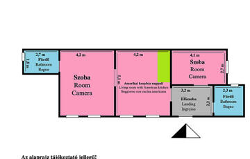 A 70 nm-es lakás 3 szobával, 2 fürdőszobával és 2 mellékhelyiséggel rendelkezik.
