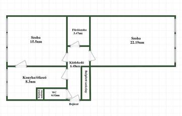 A lakás praktikus elosztású: egy kényelmes előszobából nyílik két külön nyíló szoba, egy világos konyha étkezőrésszel, egy fürdőszoba és egy különálló WC. Az ingatlan keleti és nyugati tájolásának köszönhetően a természetes fény egész nap körbejárja a lakást – délelőtt a nappali, délután a konyha és a hálószoba úszik napfényben, így a terek mindig világosak és tágasak.