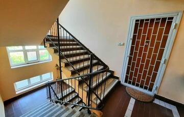Jó állapotú, két szobás lakás, az előszobában beépített szekrénnyel és a nappaliban klímával felszerelve. A szobákban fa parketta, a többi helyiségben járólap található. Hőközponti fűtés biztosítja a meleget. A műanyag hőszigetelt ablakok redőnnyel és szúnyoghálóval vannak ellátva. A vételár részét képezi az 5 m2-es tároló.