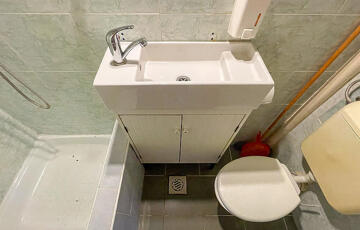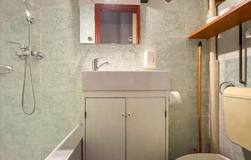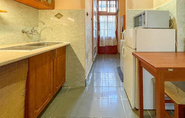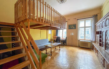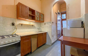 A faparkettás, két ablakos szoba igény szerint leválasztható, jelenleg a 3,65 m belmagasságot kihasználva hálógaléria került kialakításra. A fürdőszoba zuhanyzós, a konyha praktikus elrendezésű.