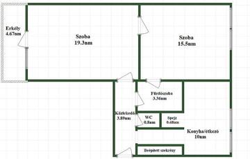 A lakás praktikus elosztású: előszoba, két külön nyíló szoba, konyha étkezőrésszel, fürdőszoba és külön WC szolgálja a kényelmet, továbbá tartozik hozzá egy hangulatos erkély is, amely ideális helyszín lehet egy reggeli kávéhoz vagy esti pihenéshez.