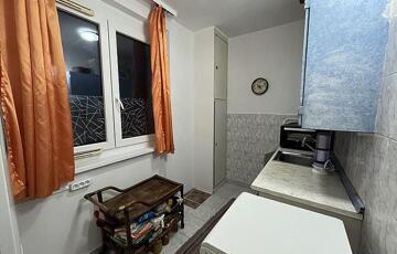 A konyha jól alakítható, praktikus méretű, nagy ablakának köszönhetően jól szellőztethető és világos. A fürdőszoba és a Wc külön helyiségben kapott helyet, a fürdőben öntöttvas kád található. A mosógép kiállása jelenleg nincsen kialakítva.