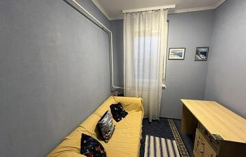 A nappali tágas, világos, szőnyegpadlós, innen nyílik az erkély, amely kellemes kilátást és nyugodt pihenési lehetőséget kínál. A két félszoba laminált parkettával burkolt, az egyik tapétás, a másik sima festett falú, így mindkettő könnyen alakítható hálószobának, dolgozónak vagy gyerekszobának.