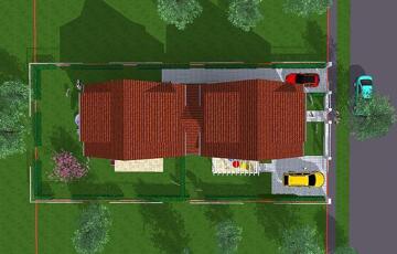Az ingatlan kétszintes lesz, 30-as porotherm téglából épül, amelyet egy 10 cm-es grafitos szigeteléssel is ellátnak majd. Egy tágas amerikai konyhás nappali étkezővel, 3 háló, fürdőszoba és mosókonyha kerül kialakításra.
