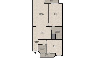 A lakás központi helysége egy 15 nm-es hall, szomszédságában találjuk a 23 nm -es, utcai nézetű, dél-keleti fekvésű, erkélykapcsolatos nappalit, a 18 nm-es hálószobát és a fürdőt.
