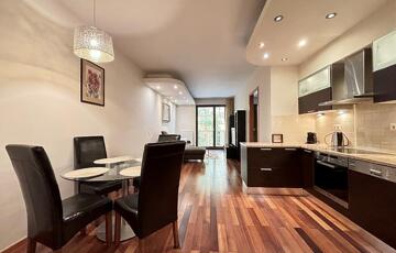 Az erkély a csendes belső udvarra néz, így a város közepén is nyugalom várja az új tulajdonost. A ház szolgáltatásai – konditerem, szauna, jakuzzi – tovább növelik a mindennapi komfortot.