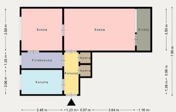 Tárolásra a lakáson belül egy kamra áll rendelkezésre.