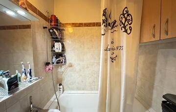 A fürdőszobában a burkolat cserélve lett és káddal rendelkezik, a WC egy külön helyiségben található.