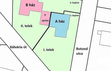 - A telken kettő családi ház van, ügyvédileg megosztva, a két családi ház között egy téglaépület helyezkedik el, ami elválasztja a két házat egymástól.