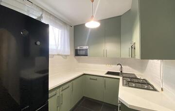 Konyhája ablakos, világos. A konyhabútor és a gépesítés a vételár részét képezi.