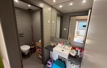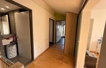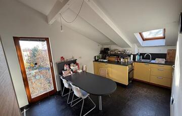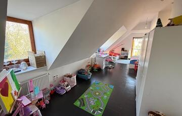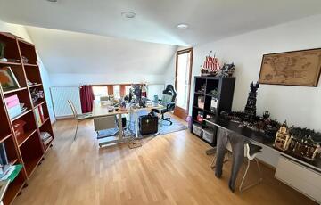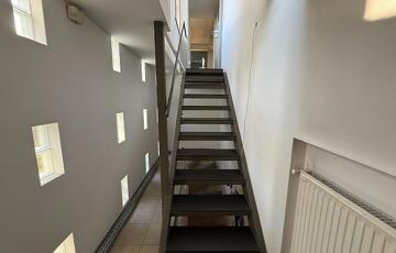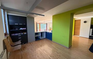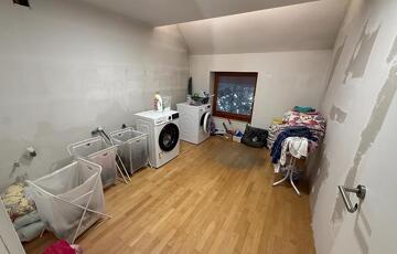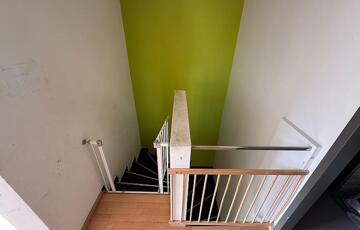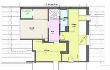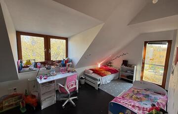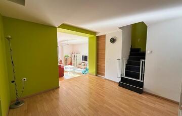 A szigetelt ház 2 lakásos, 3 szintes, amelyből az eladásra kínált lakás a felső két szinten helyezkedik el. A lakás 6 szobával rendelkezik, amelyből az első emeleten található egy nappali + 2 szoba, a többi szoba a második emeleten helyezkedik el.
