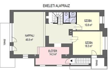 Az első emeleten található egy 4 nm-es és egy 11 nm-es terasz (utóbbi bővíthető igény szerint), valamint a 2. emeleten két franciaerkély is.