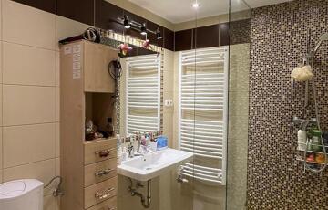 Szomszédságukban találjuk az épített zuhannyal és wc-vel szerelt fürdőszobát és a háztartási helységet, amelyből igény szerint még egy további fürdőszoba is kialakítható.