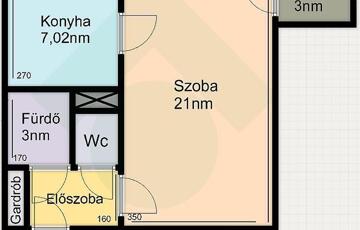 Igény esetén, könnyedén átalakítható 1,5 szobássá, a konyha átfordításával.