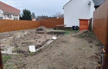 A kerítés teljesen új, illetve megtörtént a ház beton alapzatának kiöntése is.