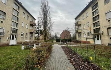 XV. KERÜLETBEN, PESTÚJHELYEN, 48 NM-ES, MÁSFÉL SZOBÁS, MAGASFÖLDSZINTI TÉGLA LAKÁS, ZÁRHATÓ TÁROLÓVAL, EGY KÖRBEKERÍTETT UDVARBAN ELHELYEZKEDŐ 12 LAKÁSOS LÉPCSŐHÁZBAN