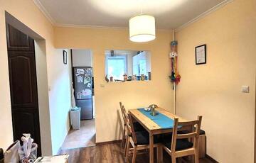 A lakás jó elosztású, világos, a szobákban jó minőségű laminált parketta található a többi helyiség járólappal burkolt. Az otthon melegéről házközponti kazán gondoskodik. A nyílászárók műanyag thermo üvegesek, redőnnyel ellátottak. A beépített bútorok a vételár részét képezik (konyhabútor gépesítve és előszobabútor). A nappaliból csatlakozik az erkély, amely szép kilátást biztosít a Budai hegyekre.